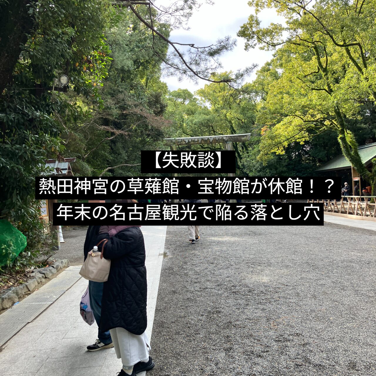 熱田神宮の展示施設は、一般的な美術館や博物館と同じように、展示替えやメンテナンスのための休館日が設定されているんです。特に私が行ったのは年末。一年の中でも特に長いメンテナンス期間に、ピンポイントで重なってしまっていました……。