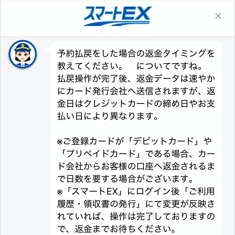 予約払戻をした場合の返金タイミングを教えてください。 | スマートEX よくあるご質問