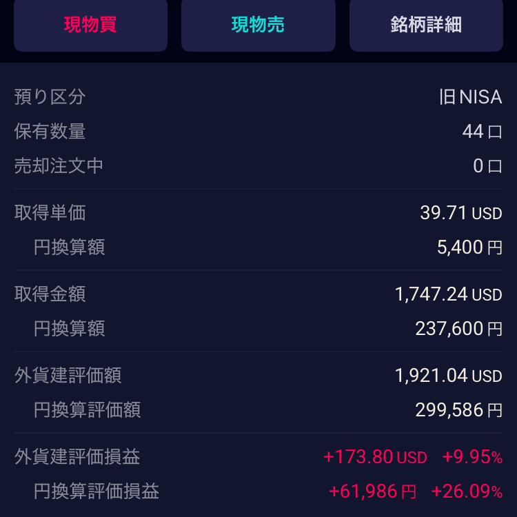 - 円換算評価損益(+26.09%): 今売った時の本当の実力値。
