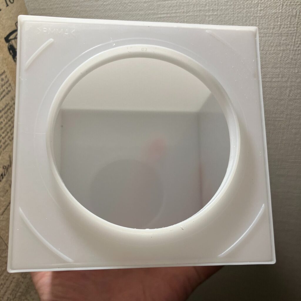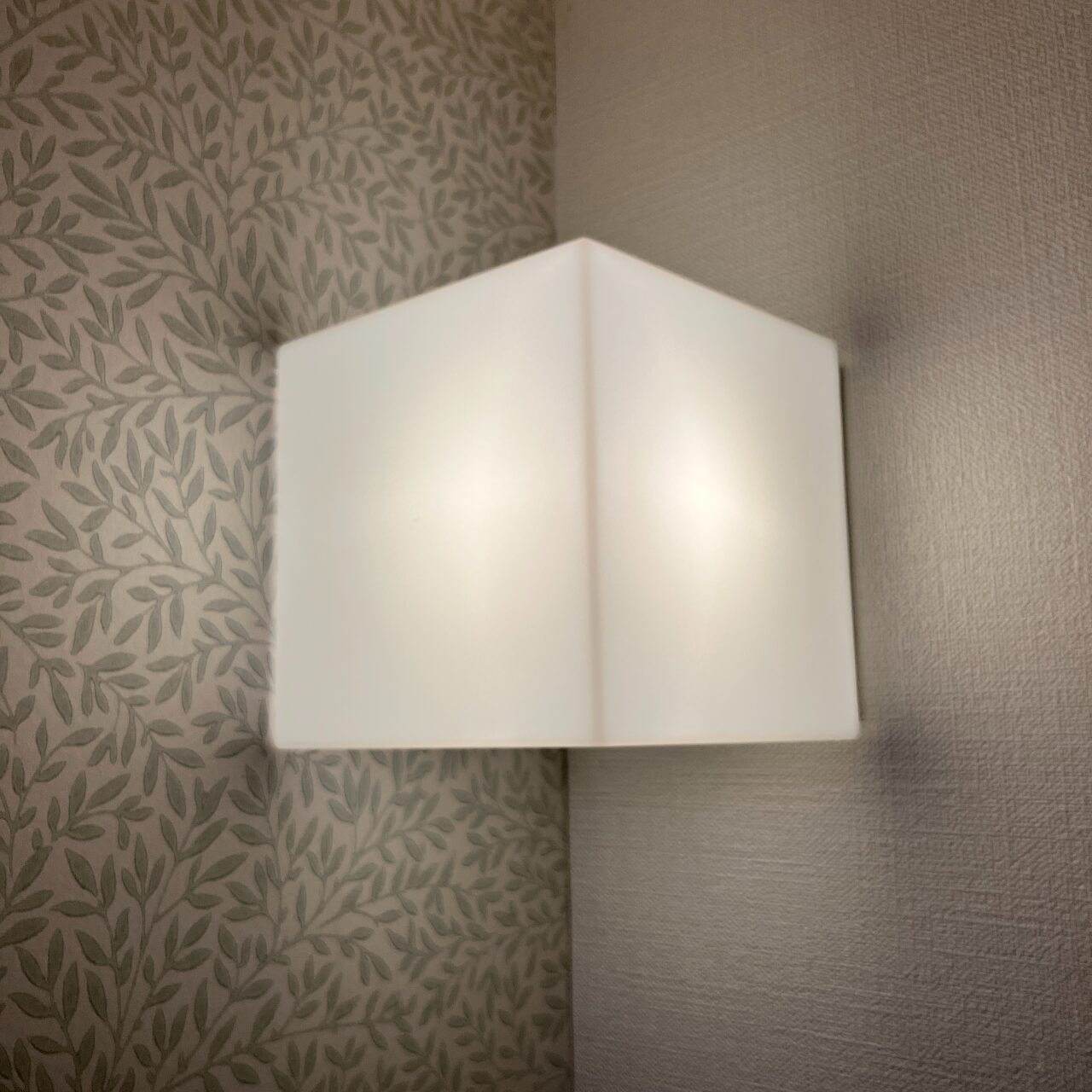 今回、私が大苦戦したのが、階段の踊り場にあるコーナー照明のカバー外し!四角い立方体のライトです。