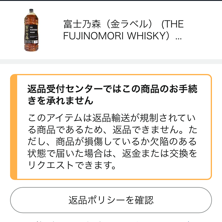 • お酒や食品は「返品不可」が基本。 Amazonの自動メールの言葉を鵜呑みにしてはいけない。
