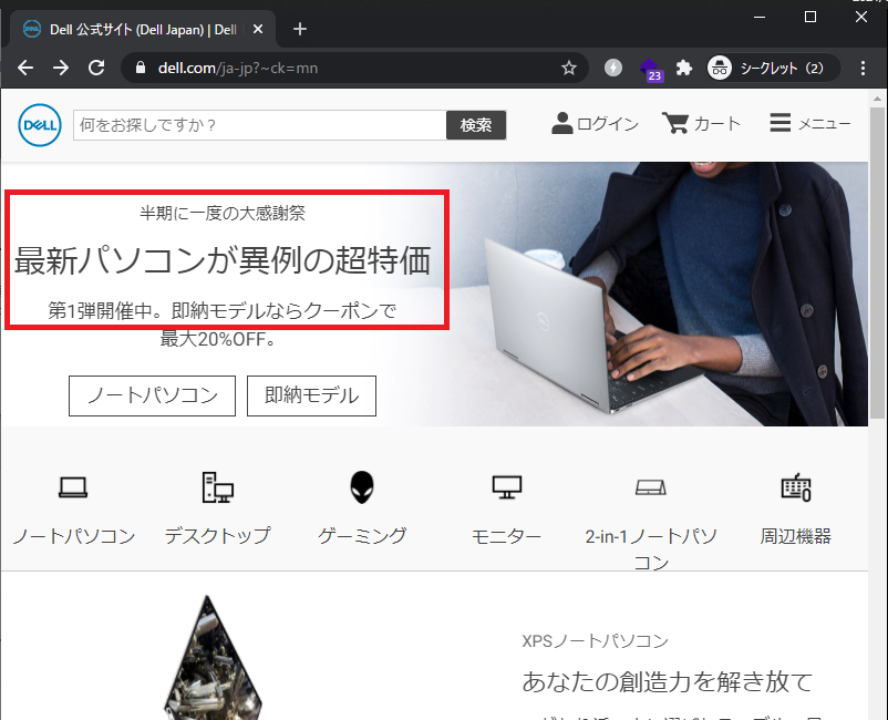 デル祭りが3月中旬に始まり、最大割引となったと思いきや、
