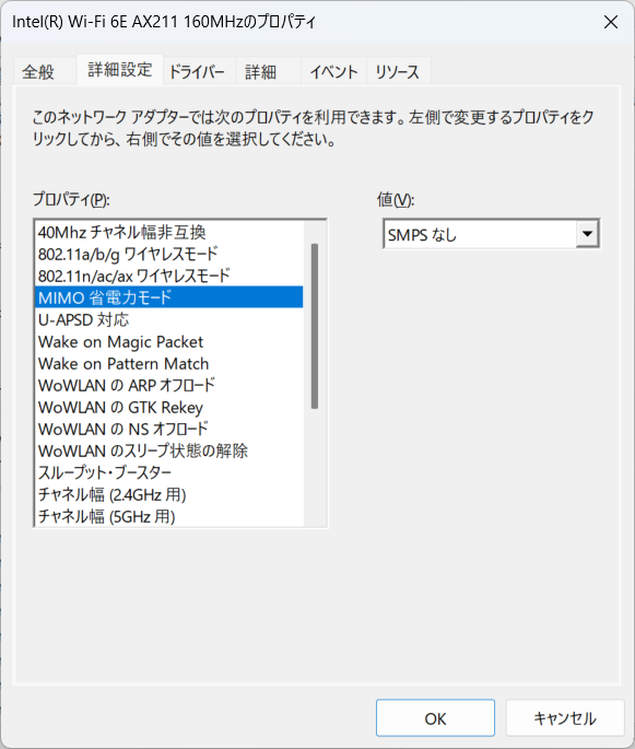 WindowsのWi-Fi設定「MIMO省電力モード」を変更したら解決しました。